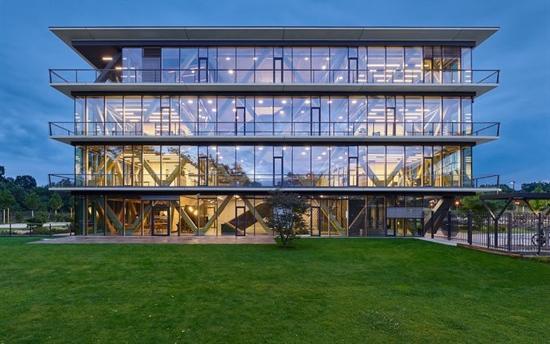整个建筑的设计犹如一座四层高的玻璃方盒,并且每层楼都围上了统一装饰的阳台。而混凝土柱的设计则为建筑更添特色,以交叉的对角线打破了玻璃幕墙的单一均质,带来了让人振奋的工业气息。