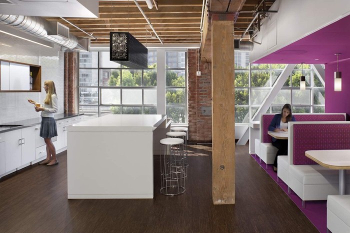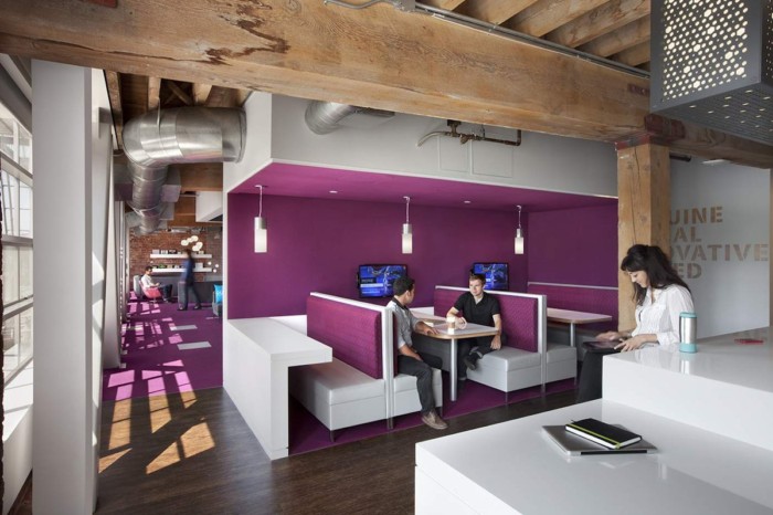 看习惯了单一色调是墙面,可以适当地选择一些区域的墙面进行色调的更换,并且可以利用油漆或者壁纸来形成不一样的视觉效果,这样会使办公空间产生不一样的效果哟。