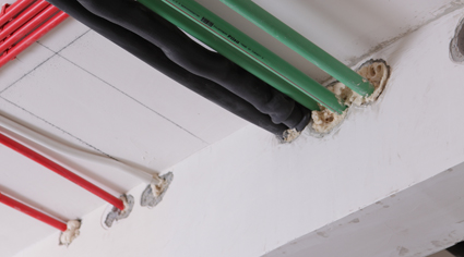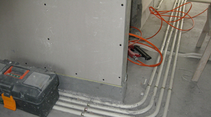 茶水间双层石膏板防潮工艺茶水间是室内最潮湿的区域,吊顶上下空间温差较大,内部容易产生水蒸气,所以这两个区域星杰采取了双层防水石膏板以阻隔上下层潮气侵蚀影响。
