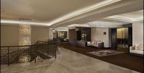 3、酒店装修走廊灯光要柔和并且没有眩光,亮度适中但必须要保证监控画面清楚。酒店装修建议采用壁光或墙边光反射照明,在每个房门的上方设计槽灯方便客人,为节省能源建议酒店装修走廊灯光采取两路控制;